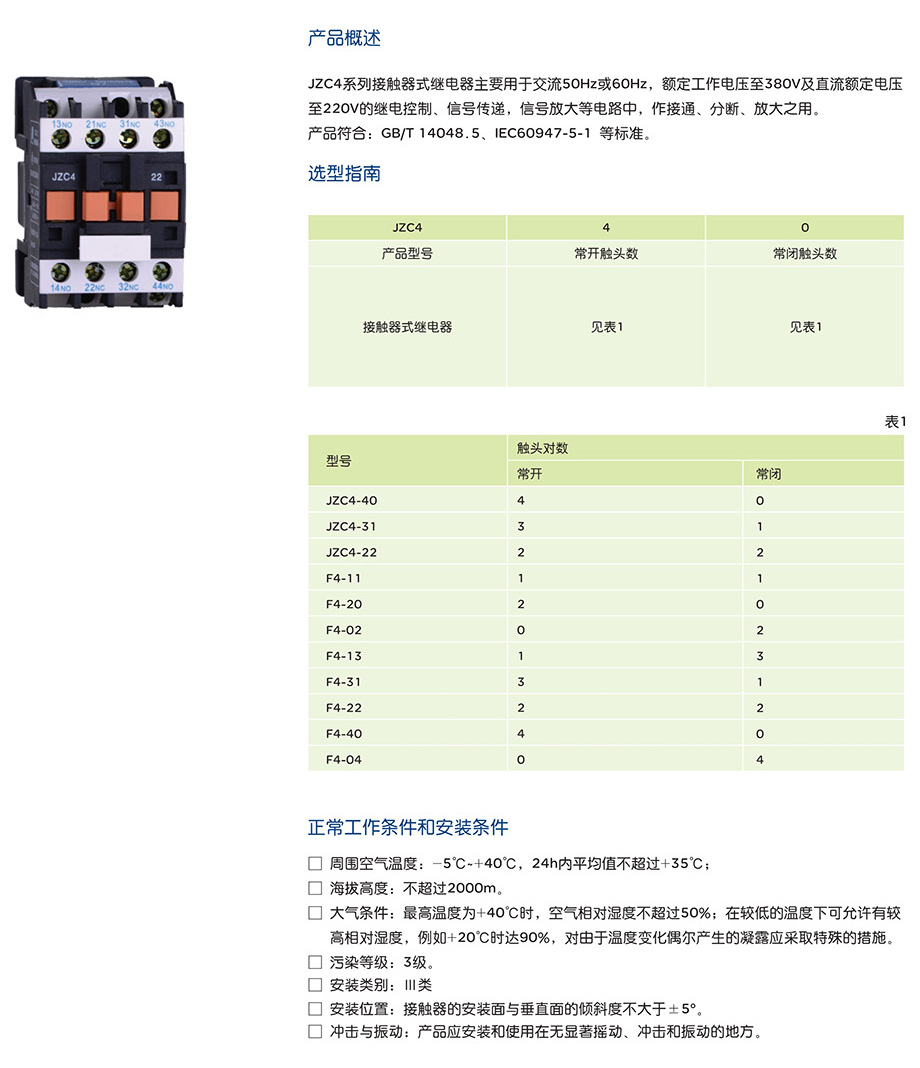 JZC4系列接触式继电器产品说明书