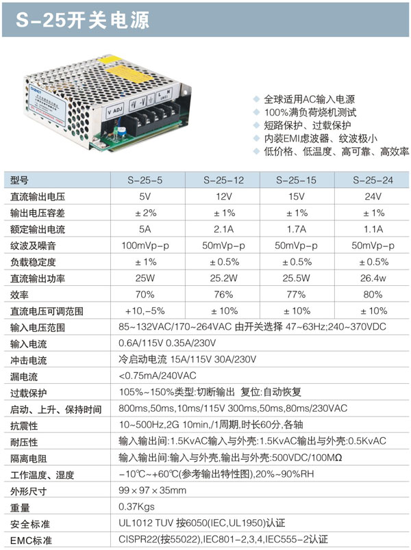 S-25W_开关电源_电源电器_产品中心_suncitygroup太阳集团电气股份有限公司