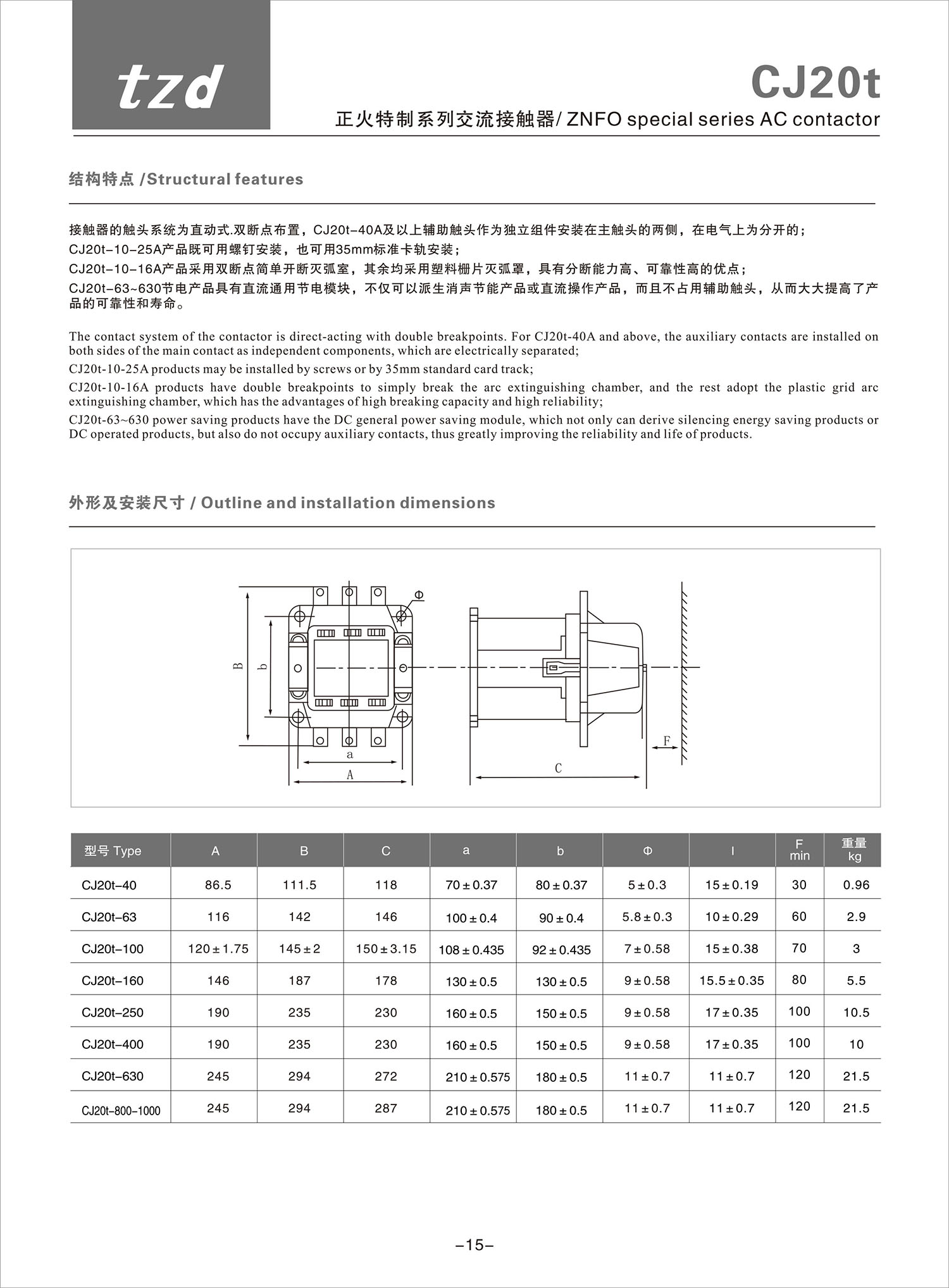 CJ20t suncitygroup太阳集团特制系列交流接触器产品说明书