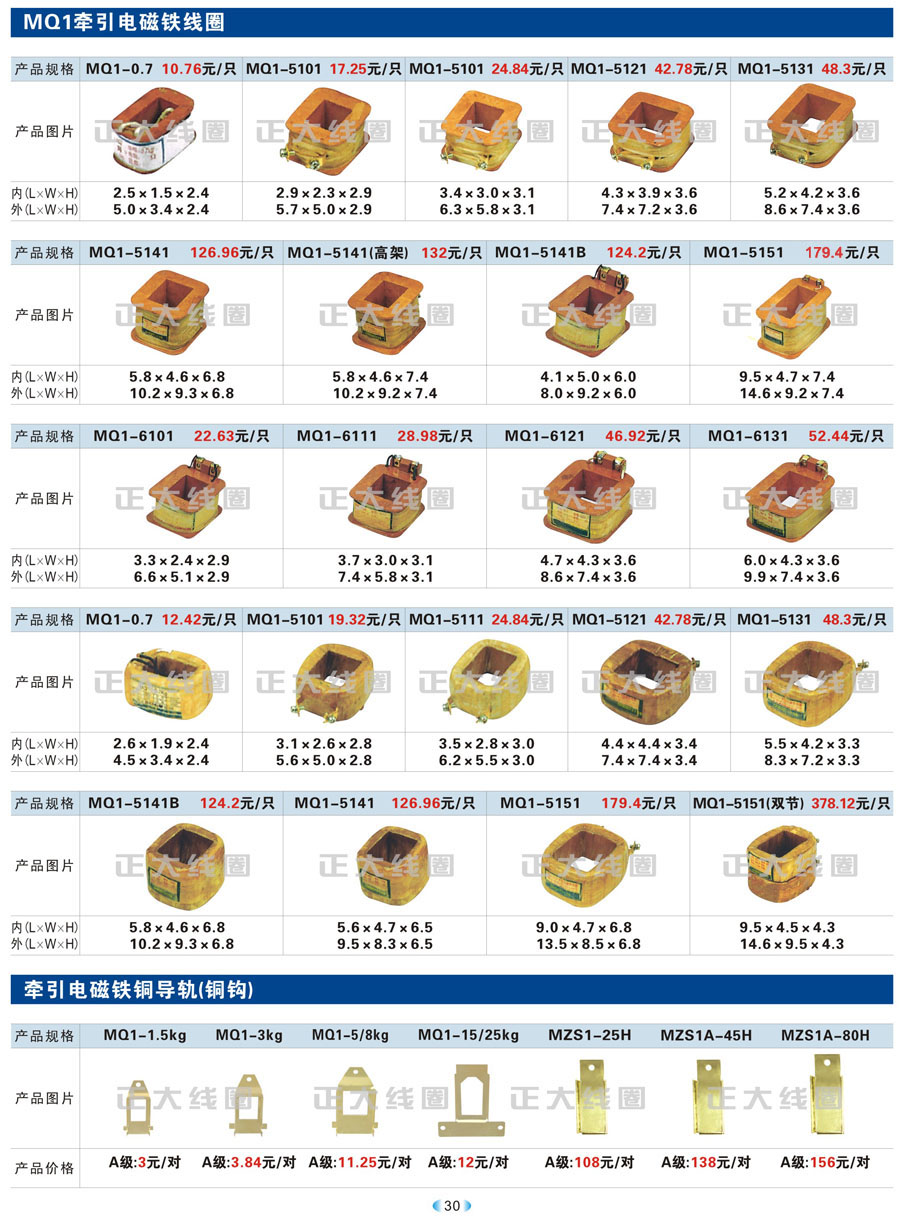 MQ1牵引电磁铁线圈、牵引电磁铁铜导轨(铜钩)