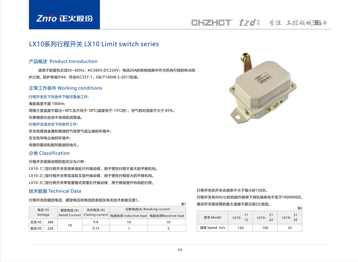 LX10系列行程开关产品说明书