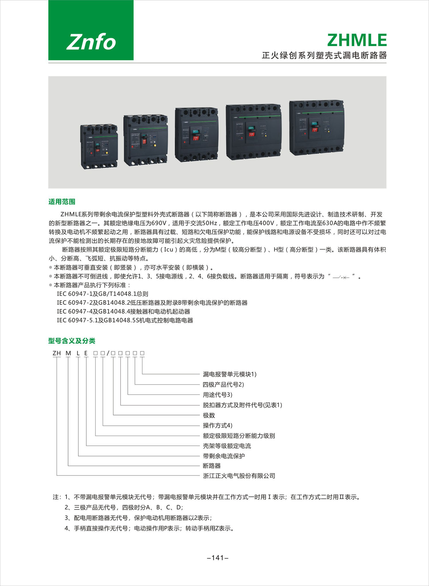 ZHMLE系列塑壳式漏电断路器产品说明书